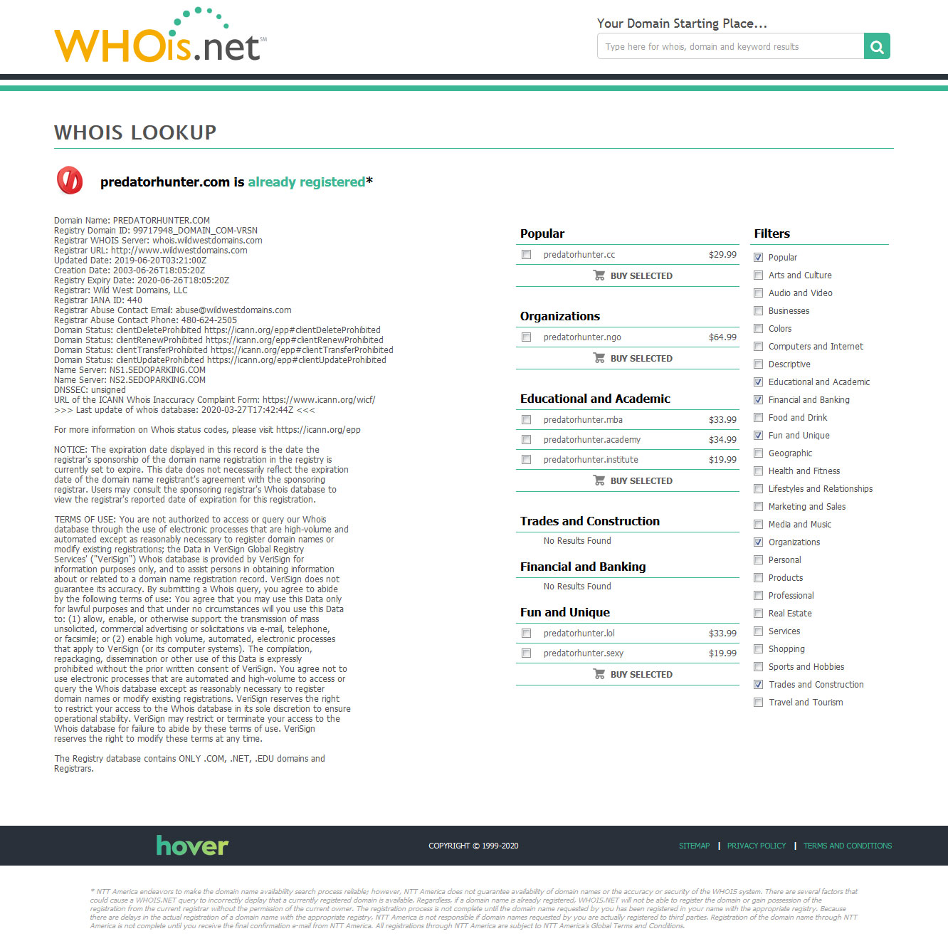 Happened to PredatorHunter.com? The Unaccounted Disappearance of a Website that Dealt With Unsavory Hypnotists In putting together this website, we have scoured the worldwide web long and hard, yet have not been able to find one active site that focuses on and deals with hypnosis abuse. However, it needs to be noted that there once was a website posted from a vigilante who professed to hunt hypnotist predators, PredatorHunter.com, but for some reason, the site is now gone. The first site found was for sale, with no discernible hypnosis content, however, there are some questions about this site, particularly the start date. According to WhoIs... the website was posted on June 26, 2003. See: WhoIs 1 | WhoIs 2 The real interesting stuff comes up when you visit the internet Wayback Machine. There are two oddities of note...: Number 1, the Wayback Machine shows that this site was archived on March 5, 2002, over a year before WhoIs says it began. Number 2, the Wayback Machine appears to have been scrubbed of all recorded archives of this website. That is very intriguing, for a web repository to not have any screenshots whatsoever of a website. https://web.archive.org/web/20020301000000*/http://predatorhunter.com/ The fact that WhoIs lists the site's creation date as 2003, but the Wayback Machine shows that it was in existence over a year earlier in 2002, is also quite odd. Couple that with the fact that ALL recorded archives of this site no longer exist and you have the makings of a bonafide Scooby Doo mystery. The second version of Predator Hunter that comes up in a search is a blog site that appeared in 2005, posted through the Tumblr website. https://unknownmrthingamabob.tumblr.com The odd thing is, this website is now gone as well. So what gives? Whether these were the same website creator or not, it is somewhat disappointing that someone appeared to have a very strong passion for exposing hypnotist predators, (even though they might have been a tad bit extreme in their approach) but now both sites are no longer active. HypnosisReality.com would very much like to know any pertinent predator data these sites might have contained. It's unfortunate that it is somehow missing from the internet archives. In closing, it is heartening to know that there are others out there who know of and understand the danger at hand when it comes to deviant hypnotists. It's even better to know that some are quite willing to do something about it. With that said... the first option should always be to address the matter within legal constraints. Getting them to pay as long as possible should always be the rule. In the end though, we could certainly use more hypno-predator hunters, willing to expose deviant hypnotists. The world at large is long overdue in understanding the truth about hypnosis abuse. With any luck, hopefully more people will rise to join the fight, to help inform and to educate about the dark realities of immoral, deviant hypnotists. God only knows, we most certainly (desperately) need it.